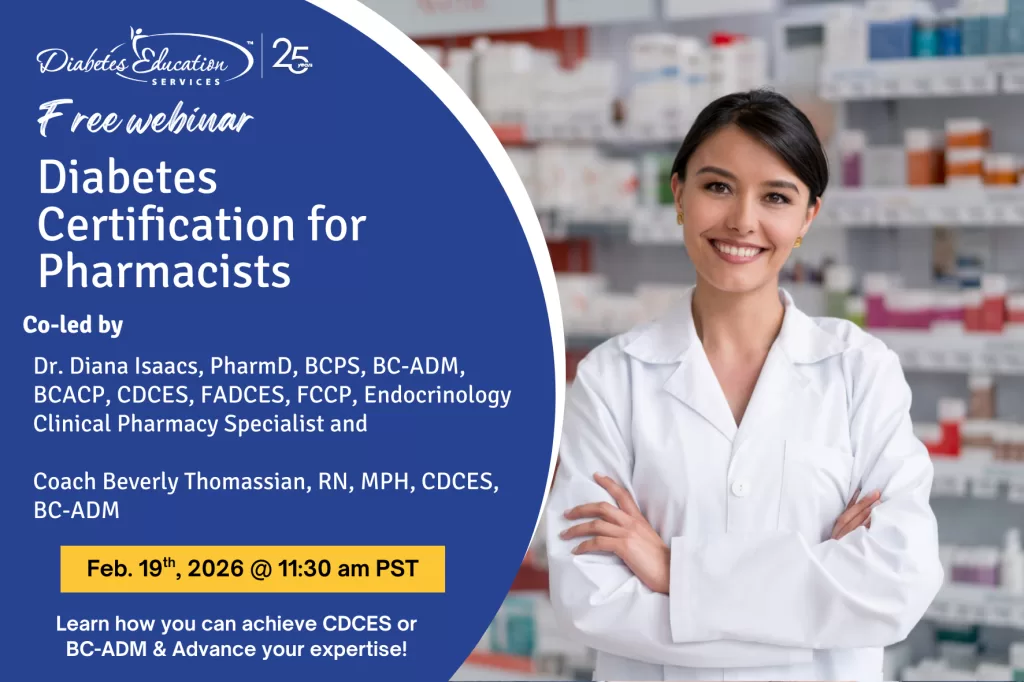 Pharmacists are essential leaders in diabetes care, and advanced certification can expand your clinical impact, professional confidence, and career opportunities. This free, pharmacist-focused webinar provides a clear, practical roadmap for achieving Certification Diabetes Care and Education Specialist (CDCES) or Board Certification in Advanced Diabetes Management (BC-ADM) without confusion or overwhelm.